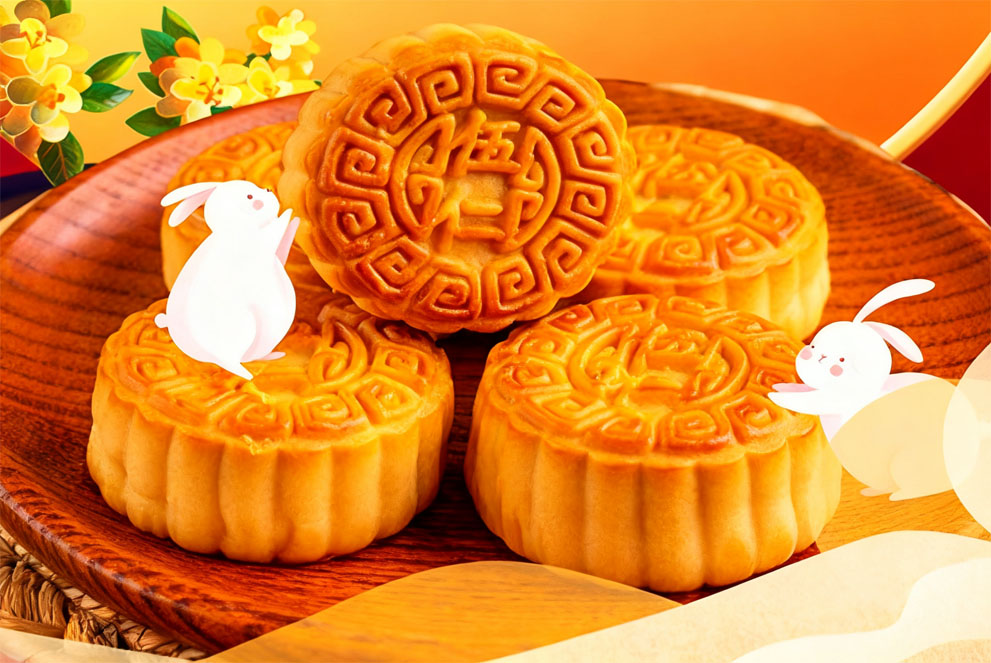 Mondkuchen sind das traditionelle Essen. Ihre runde Form symbolisiert ein Wiedersehen und Füllungen wie Lotuskernpaste, rote Bohnenpaste oder Fünf-Nuss-Mischung.